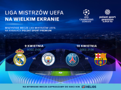 Helios zaprasza również na projekcje wydarzeń sportowych na żywo. W nadchodzącym tygodniu na wielkich ekranach zagoszczą mecze ćwierćfinałowe Ligi Mistrzów UEFA. 9 kwietnia będzie to pojedynek Realu Madryt z Manchesterem City, a 10 kwietnia odbędzie się starcie PSG z FC Barceloną!