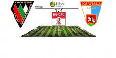 Pięć minut przed końcem po zagraniu Agbora nienajlepiej interweniował Wróblewski, ale Snopczyński uderzając z około pięciu metrów strzelił nad poprzeczką. Chwilę później Wiślacy dobili słabe Zagłębie. Po kolejnej kontrze piłkę w polu karnym otrzymał Szymanek, huknął w okienko i skompletował w Sosnowcu dublet pieczętując efektowną 1:4 i w pełni zasłużoną wygraną gości.