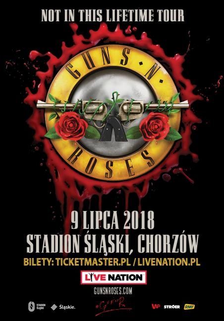 Na koncert w Polsce zapraszają: Województwo Śląskie i Live Nation..Odrodzone Guns N’ Roses i ich niezwykle udana trasa Not In This Lifetime Tour – jak widać – nie zwalniają tempa, skoro kultowy zespół zamierza w 2018 roku szturmem podbić ponad 13 stadionów na terenie całej Europy, a to nie wszystko! Grupa wystąpi również w roli headlinera na takich festiwalach, jak: Download Festival UK, Paris i Madrid, na włoskim Firenze Rocks oraz belgijskim Graspop Metal Meeting. Za produkcję trasy odpowiada Live Nation, a rozpoczeła się ona 3 czerwca na berlińskim Olympiastadion z zaplanowanymi koncertami w Danii, Wielkiej Brytanii, Francji, Włoszech, Belgii, Hiszpanii, Holandii, Polsce, Norwegii, Szwecji i kilkoma datami w Niemczech. Po raz pierwszy w historii zespołu rockowe ikony zagrają w Estonii, na odnowionym Tallinn Song Festival Grounds.Pierwsza europejska część trasy Not In This Lifetime Tour sprzedała ponad million biletów w 2017 roku, co daje jej status najbardziej udanej trasy rockowej tego roku, udowadniając ponad wszelką wątpliwość, że postawa, duch i wpływ zarówno Guns N’ Roses, jak i rock’n’rolla są silne jak nigdy dotąd.