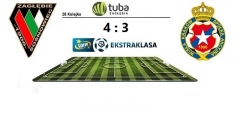 Zagłębie Sosnowiec w 28 kolejce LOTTO Ekstraklasy po bardzo emocjonującym meczu trzymającym w napięciu do ostatnich chwil wygrało z Wisłą Kraków 4:3 i zrównało się w tabeli z przedostatnią Wisłą Płock. Strata do bezpiecznego miejsca wynosi już tylko 3 punkty. Zagłębie postawiło kolejny krok w kierunku utrzymania. Krakowianie nie poradzili sobie bez kontuzjowanych Marcina Wasilewskiego i Jakuba Błaszczykowskiego i spadli na ósme miejsce.