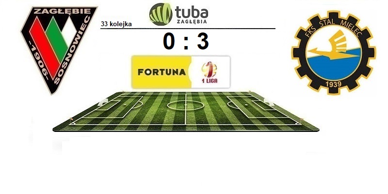 Zagłębie Sosnowiec uległo u siebie na Stadionie Ludowym Stali Mielec 0:3 (0:1), dla której bramki zdobyli: Michał Żyro dwie i Mateusz Mak. Biało-niebiescy pokonali w meczu 33 Kolejki Fortuna 1 Ligi Zagłębie Sosnowiec i tym samym przypieczętowali swój awans do najwyższej klasy rozgrywkowej.