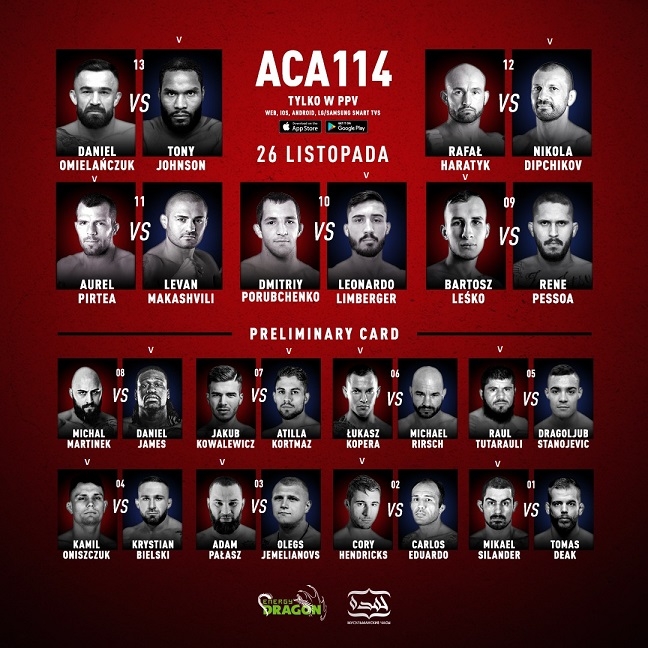Spośród Polaków, na ACA 114 swoje walki wygrali Bartosz Leśko, Łukasz Kopera, Kamil Oniszczuk i Adam Pałasz.