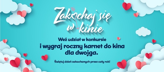 Kina Helios kochają wszystkich widzów – bez wyjątków! Nie od dziś wiadomo, że zakochani robią sobie prezenty, tak jest i w tym wypadku. Sieć zaprasza do udziału w konkursie, w którym nagrodą główną jest roczny karnet do kina dla dwojga! Dzięki niemu laureaci będą mogli celebrować swoją miłość do kina przez okrągły rok. Szczegóły dostępne są pod adresem: www.helios.pl/walentynki.