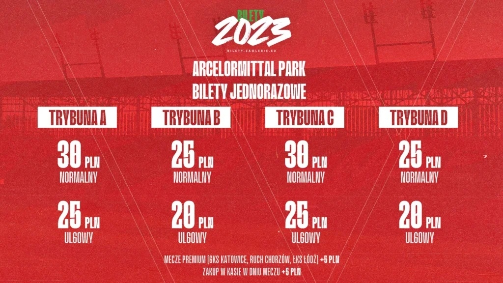 MECZ Z GKS KATOWICE JEST SPOTKANIEM PREMIUM – BILETY + 5 ZŁOTYCH
