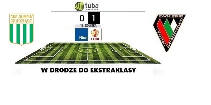 Zagłębie Sosnowiec w meczu 18 kolejki Nice I Ligi przełamało wkońcu pechową serię meczów wyjazdowych bez zwycięstwa i wygrało w Grudziądzu z tamtejszą Olimpią 0:1, po bramce Arkadiusza Jędrycha w doliczonym czasie drugiej połowy. Brawo.