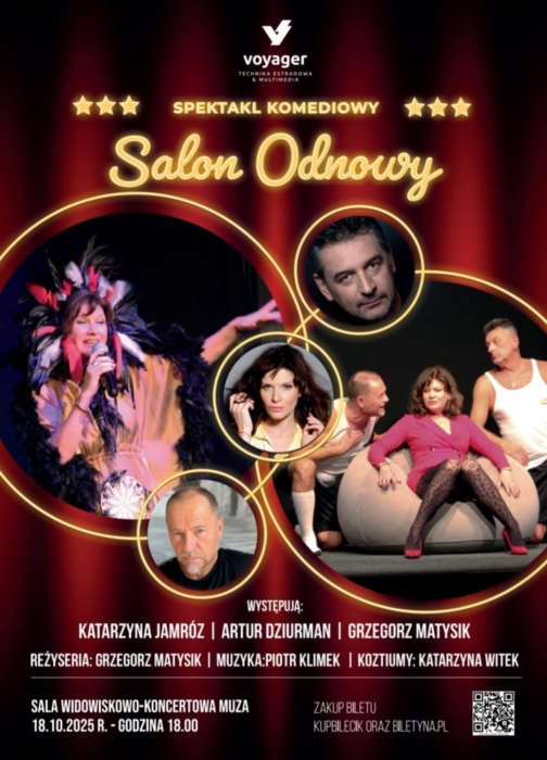18.00 w Sali Widowiskowo - Koncertowej MUZA zapraszamy serdecznie na – spektakl komediowy „SALON ODNOWY”. Bilety od 80 zł cały czas w sprzedaży. Zapraszamy